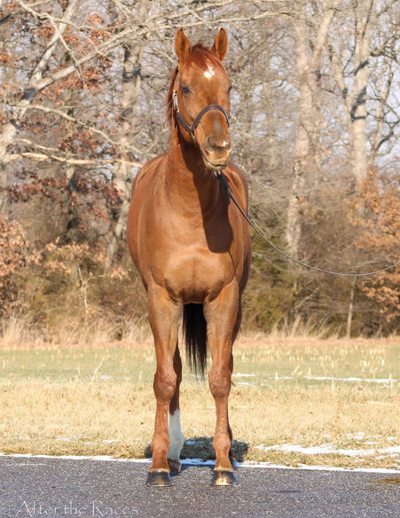 Duckpins is a big, 4 year old, chestnut gelding that came to us in partnership with Beyond the Wire. He is retiring after 17 races. Hasn't won a race in over a year and it was just time to move on with him. The good news is he retired sound!