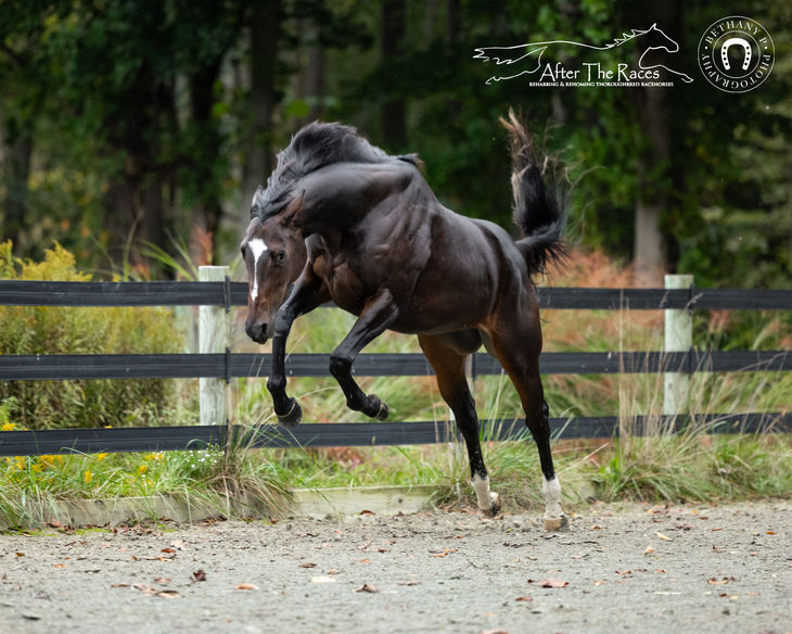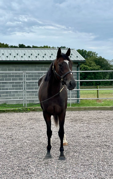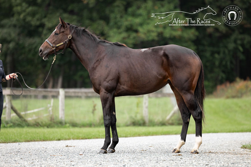 Fine Aleigh is a 3 year old, bay filly by Bourbon Courage that came to us by way of Beyond the Wire in Maryland. She comes from good connections and a good trainer that is a friend of ATR and is reported sound, just slow on the track. She's raced just 8 times with her last race at the end of June this year.
