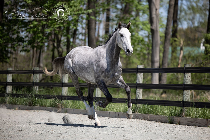 Silver Blaze is a 16.1 hand, 3 year old, grey gelding who arrived recently by way of Beyond the Wire in Maryland. He is by Cupid and out of a PioneerOf The Nile mare.