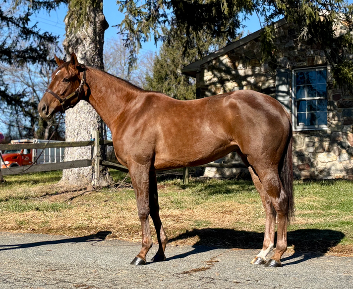 She has no vices and has been good to handle so far. We expect she'll do well with anyone comfortable bringing along greenies right off the track! We hope to get some photos of her soon, stay tuned!