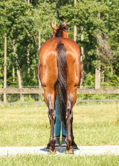 Trappe The Gold is a 5 year old, bay gelding that came to us by way of Aftercare Charles Town. He raced 13 times and retired without any known injuries. His SI was a bit sore when he retired, but some chiro and some time off had him feeling great in a very quick time!