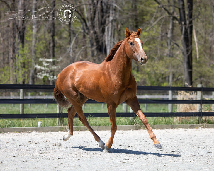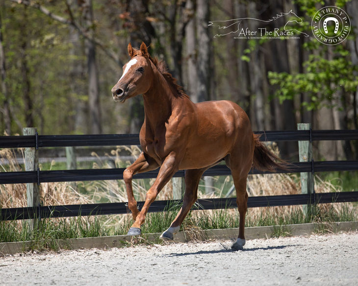 Walk It Out Nanny, “Poppy,” arrived in March from Beyond the Wire in Maryland. She’s 5 years old, about 16 hands, and has lovely build that looks uphill on first impression. She raced 20 times and is retiring due to not being competitive.