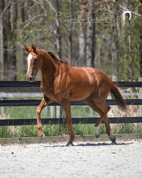 Poppy had a great vet evaluation. She's very sound with no known limitations. She did have a fracture repaired in one pastern earlier in life that she went back to racing on without issue and our vet says should not limit her future in any way.