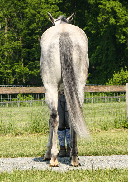 At some point in Bob's career he had an apical sesamoid fracture which has since healed. Radiographs show no significant changes or arthritis in the fetlock. Our vet thinks he'll do great as a dressage or pleasure horse, even a trail horse that hops over logs to get from point A to B on a trail. He'd just do best in a non-jumping home. Other than that the sky is the limit.
